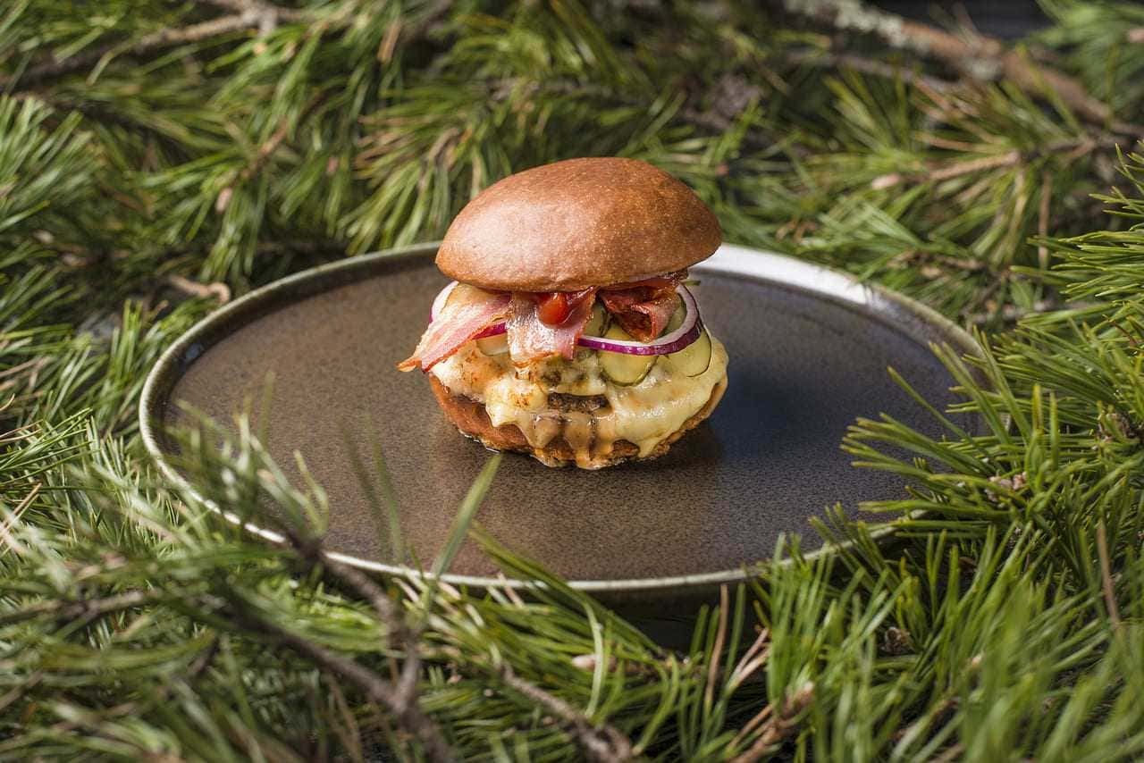 В меню представлены блюда истинно карельской кухни: традиционная уха, калитки, рыба. Традиционные карельские калитки – это горячие открытые карельские пирожки с наливками, начинками, припеками, смазанные сливочным маслом. В нашей интерпретации — это ржаное тесто с подушечкой из картофельного крема, сверху мы кладем тартар из карельской форели и украшаем завитками зеленого лука. Можно есть их с утра и до ночи!