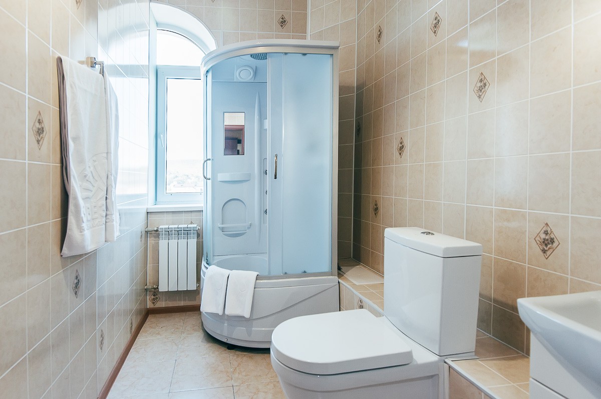 Сан-узел: ванная комната, с набором полотенец, индивидуальные наборы косметики, унитаз, фен.