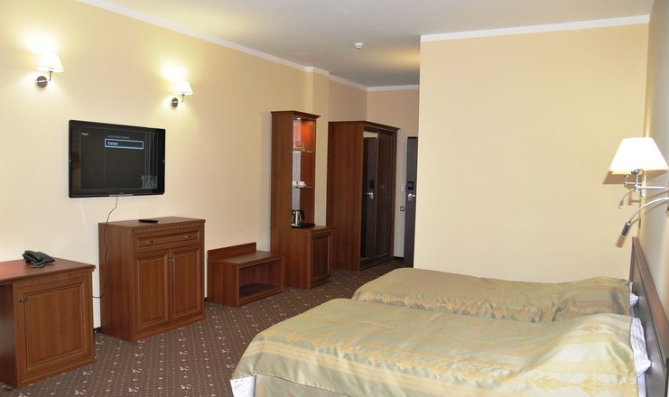 В номере: две удобные отдельные кровати (100х200 см), которые при необходимости легко можно соединить в одну двухспальную (200х200 см), две тумбочки, журнальный столик, два стула и письменный стол, настольная лампа, шкаф с зеркалом, ЖК телевизор, телефон, стеллаж, мини-бар, электрический чайник,   набор посуды, сейф, бесплатный wi-fi, кондиционер